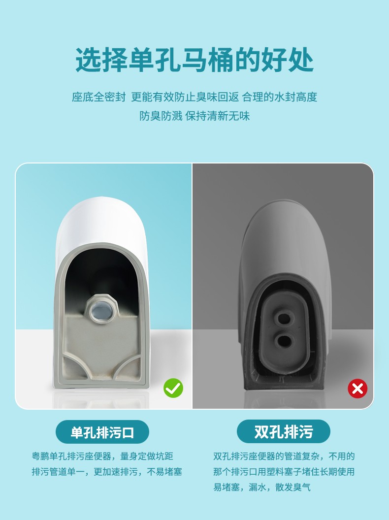粤鹏座便器超漩虹吸式防冻裂大管道水箱下凹设计陶瓷马桶卫生间8258